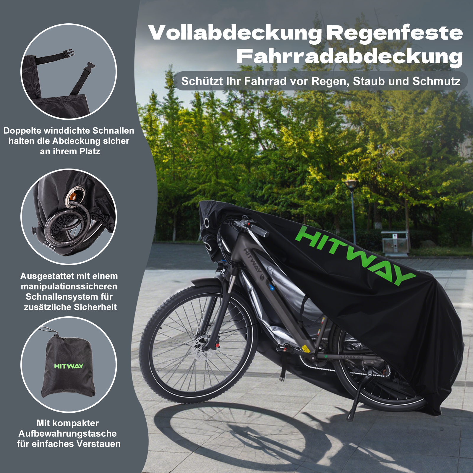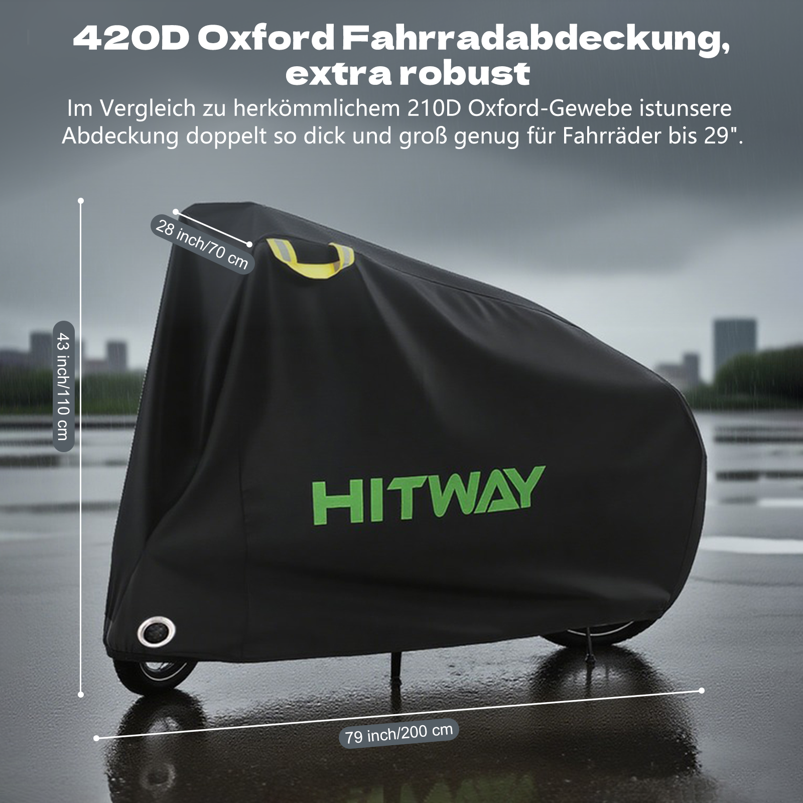 - Universelle Passform: Die HITWAY wasserdichte Fahrradabdeckung (200 × 110 × 70 cm) passt perfekt für Mountainbikes, E-Bikes, Citybikes und Rennräder bis 29 Zoll.