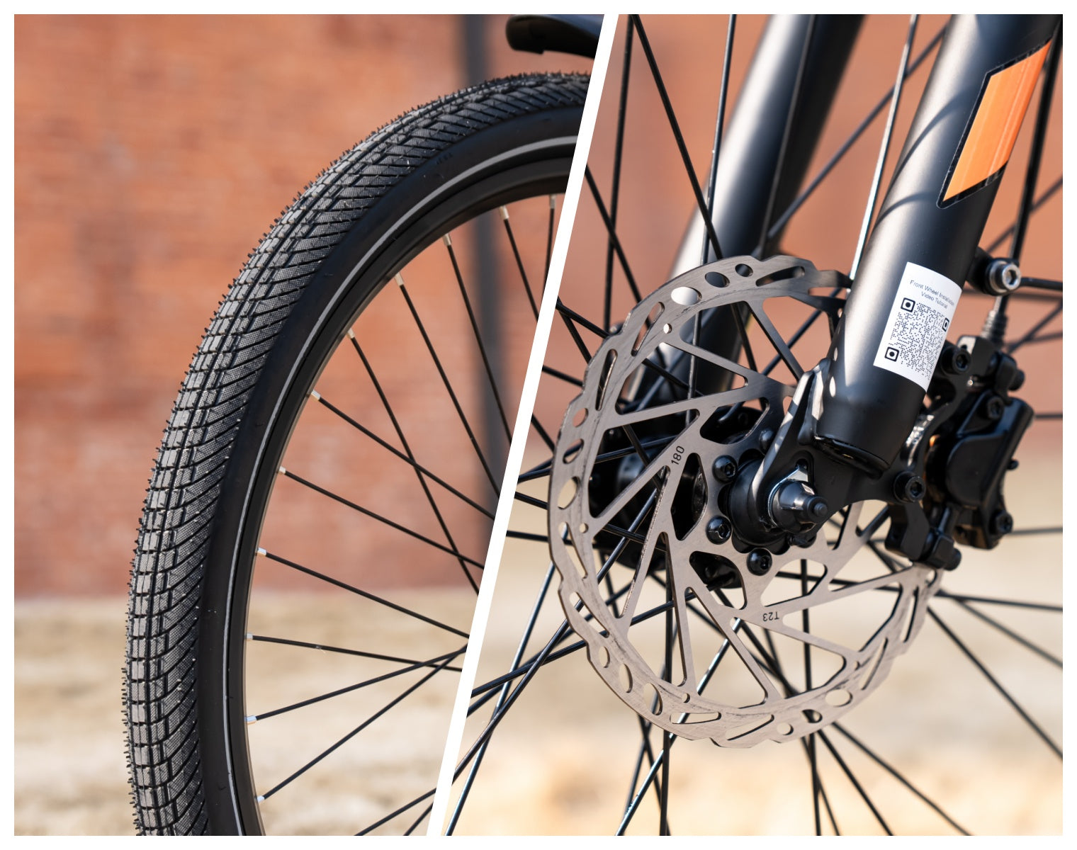 Sorgenfreies Fahren auf jedem Untergrund. Das BK-U1 ist mit verstärkten, pannensicheren 27,5" x 2,2" Reifen ausgestattet. In Kombination mit den professionellen hydraulischen ZOOM-Scheibenbremsen genießen Sie eine präzise dosierbare und kraftvolle Bremsleistung – selbst bei Nässe. So wird Ihr täglicher Arbeitsweg ebenso sicher wie komfortabel.