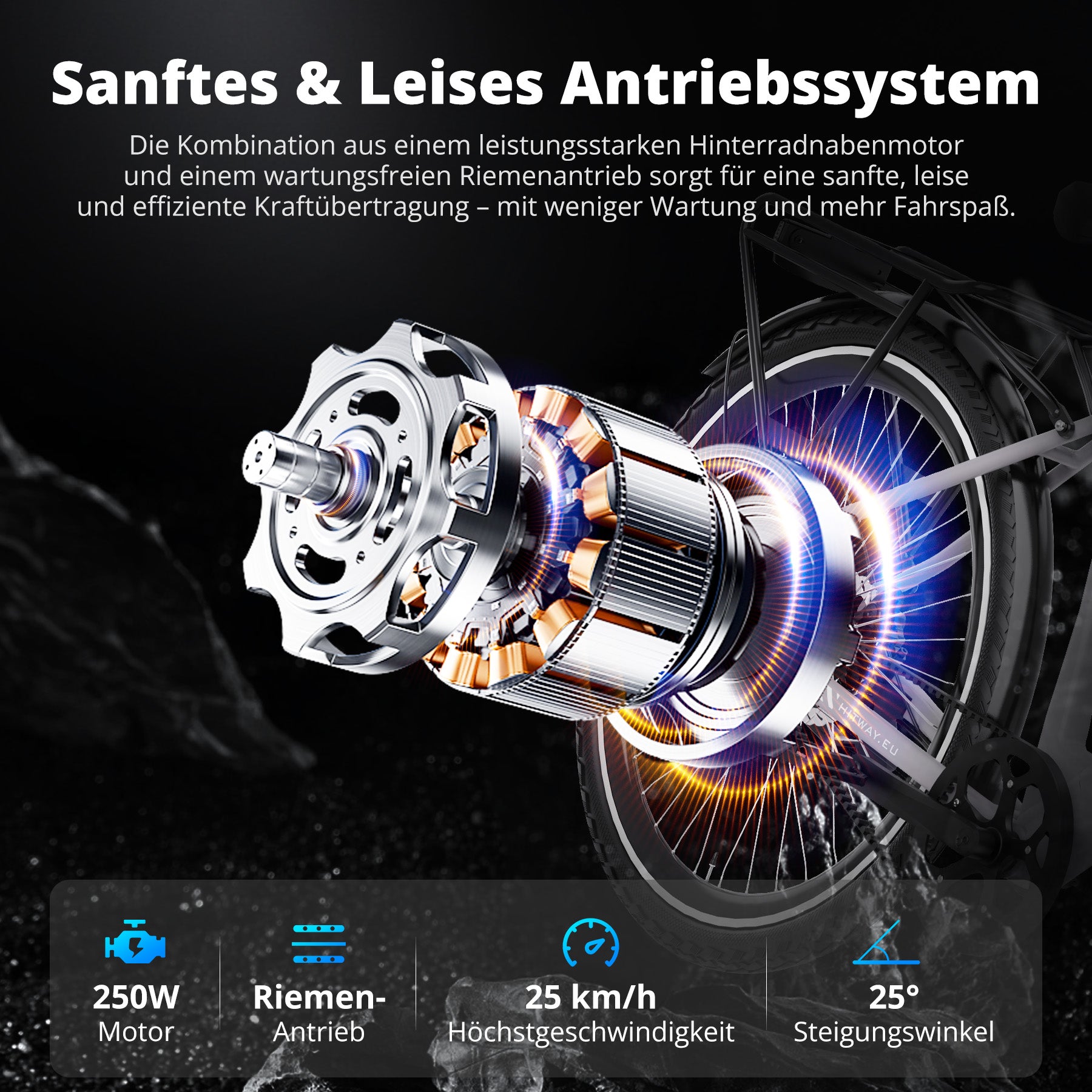 Sanftes Fahrgefühl durch Drehmomentsensor & Geräuschloser Riemenantrieb