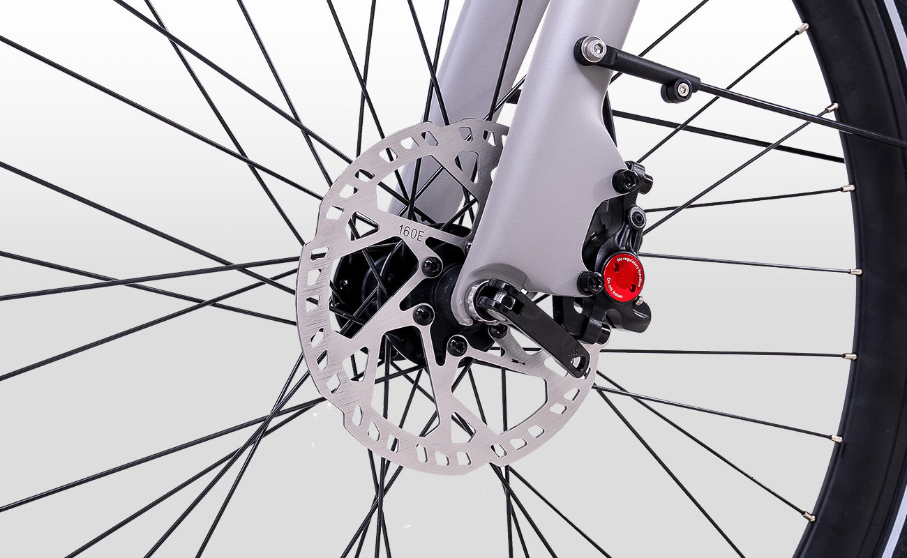 Sicherheit hat Priorität. Das BK18 Pro ist mit neu aufgerüsteten und äußerst zuverlässigen hydraulischen Scheibenbremsen vorne und hinten ausgestattet. Diese Premium-Bremsen bieten außergewöhnliche Bremskraft bei allen Wetterbedingungen, erfordern weniger Handkraft und ermöglichen eine präzise Dosierung für überlegene Kontrolle und ein sicheres Gefühl im hektischen Stadtverkehr. Fahren Sie souverän, da Sie wissen, dass Sie im Bedarfsfall ausreichende Bremskraft zur Verfügung haben.