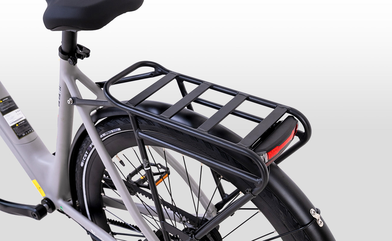 Entwickelt für maximale Zugänglichkeit und Komfort verfügt das BK18 Pro über einen hochfesten, leichten Aluminiumlegierungs-Tiefeinsteiger-Rahmen (Step-Through Frame). Dieses tiefeinstiegige Design ist ein entscheidendes Merkmal, das es Fahrern aller Größen und Mobilitäten ermöglicht, mühelos auf- und abzusteigen, was es ideal für tägliche Besorgungen und den Stadtverkehr macht. Mit einem Gewicht von nur 20 kg (44 lbs) ist es außergewöhnlich agil und leicht zu manövrieren oder zu tragen. Der verstellbare Lenkerwinkel, die pannensicheren 700*42c Rennradreifen und die enthaltenen Schutzbleche/Lichter runden das durchdachte Design für eine komfortable Allwetterfahrt ab.