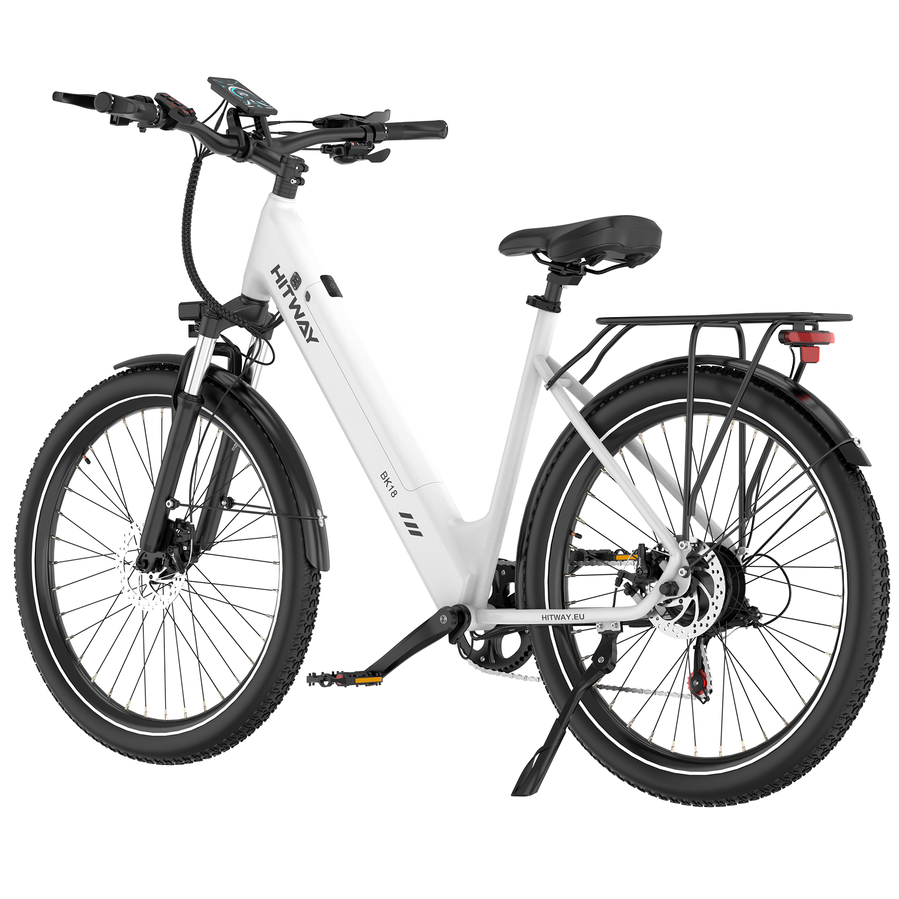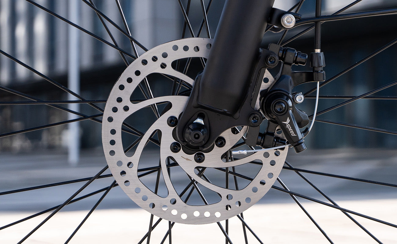 Vergessen Sie Bodenwellen und konzentrieren Sie sich auf den Weg. Die Kombination aus einer stoßdämpfenden Federgabel und pannensicheren 27,5" x 2,8" Breitreifen bietet überlegene Traktion und Stabilität. Von asphaltierten Straßen bis hin zu holprigen Abkürzungen – dieses E-Bike schützt Sie effektiv vor Vibrationen und unerwarteten Reifenpannen.