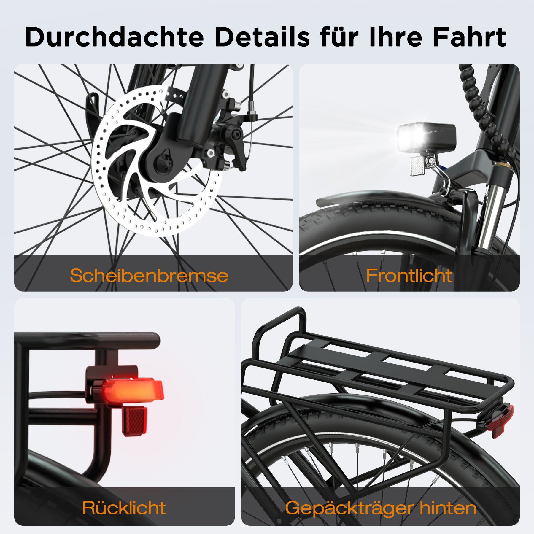 Anpassbare Leistung: 250W Motor & 3 Stufen Tretunterstützung
