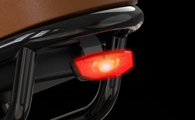 Large motorcycle headlight for wide angle visibility. Tail light that also serves as a brake light.
