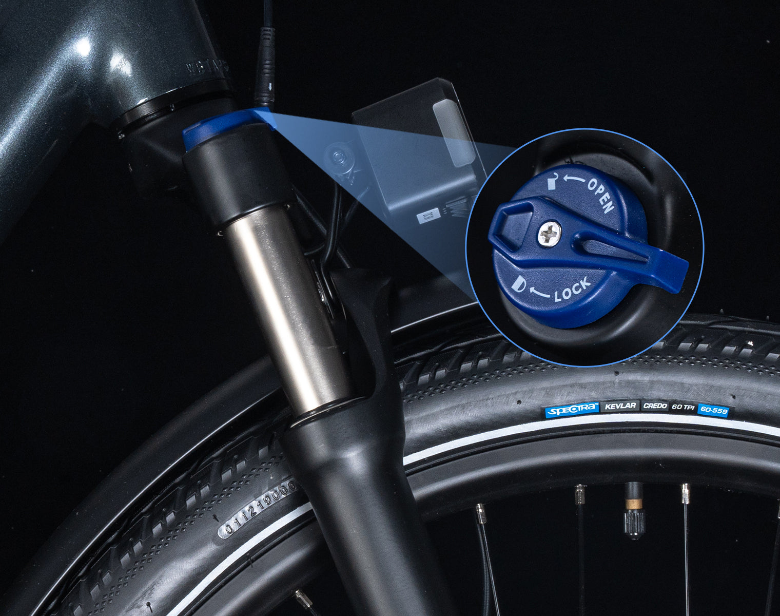 Fahrgefühl, egal ob in der Stadt oder auf dem Land. Auf flachen Strecken können Sie die Federgabel einfach sperren, um die Pedaliereffizienz zu maximieren.