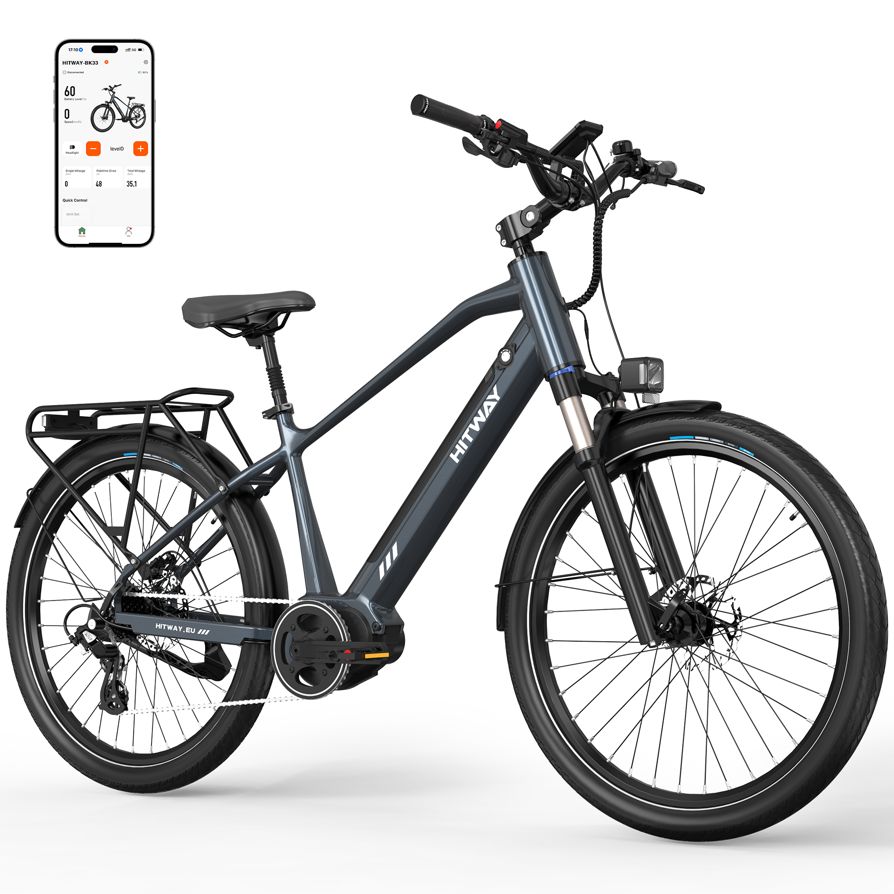 Bleiben Sie vernetzt mit dem intelligenten Bluetooth LCD-Display, das Ihnen Geschwindigkeit, Kilometerstand und Akkustatus in Echtzeit anzeigt. Synchronisieren Sie das Display mit der HITWAY App auf Ihrem Smartphone, um Ihre Routen zu verfolgen, Leistungsdaten zu analysieren und Ihr Fahrerlebnis individuell anzupassen.