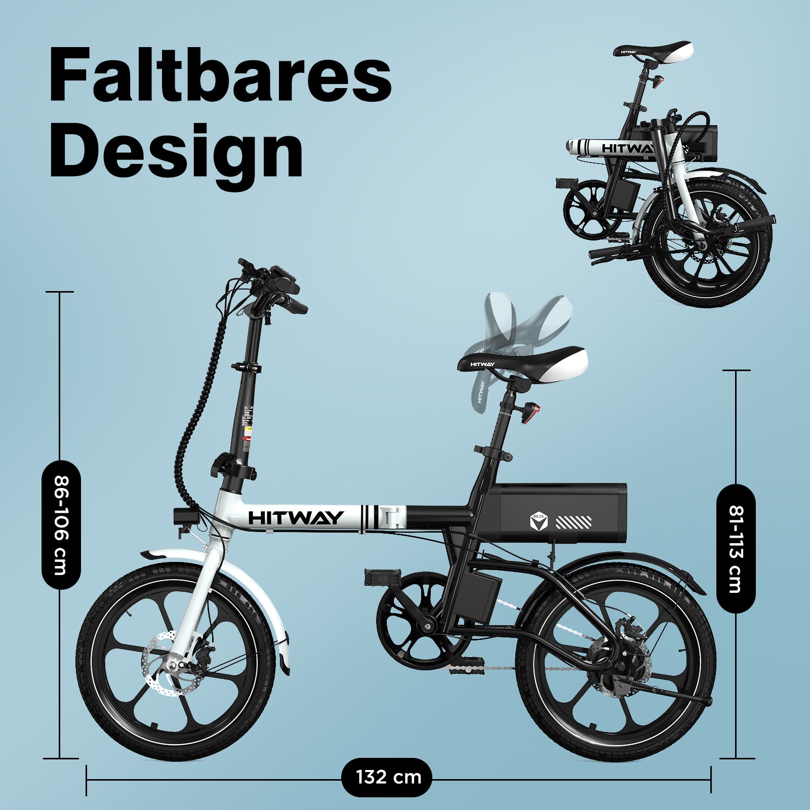 The HITWAY BK35 e-bike features a simple folding mechanism that allows it to be folded effortlessly in just a few steps. When folded, the bike measures just 79 x 44 x 66 cm, making it incredibly compact and easy to store.