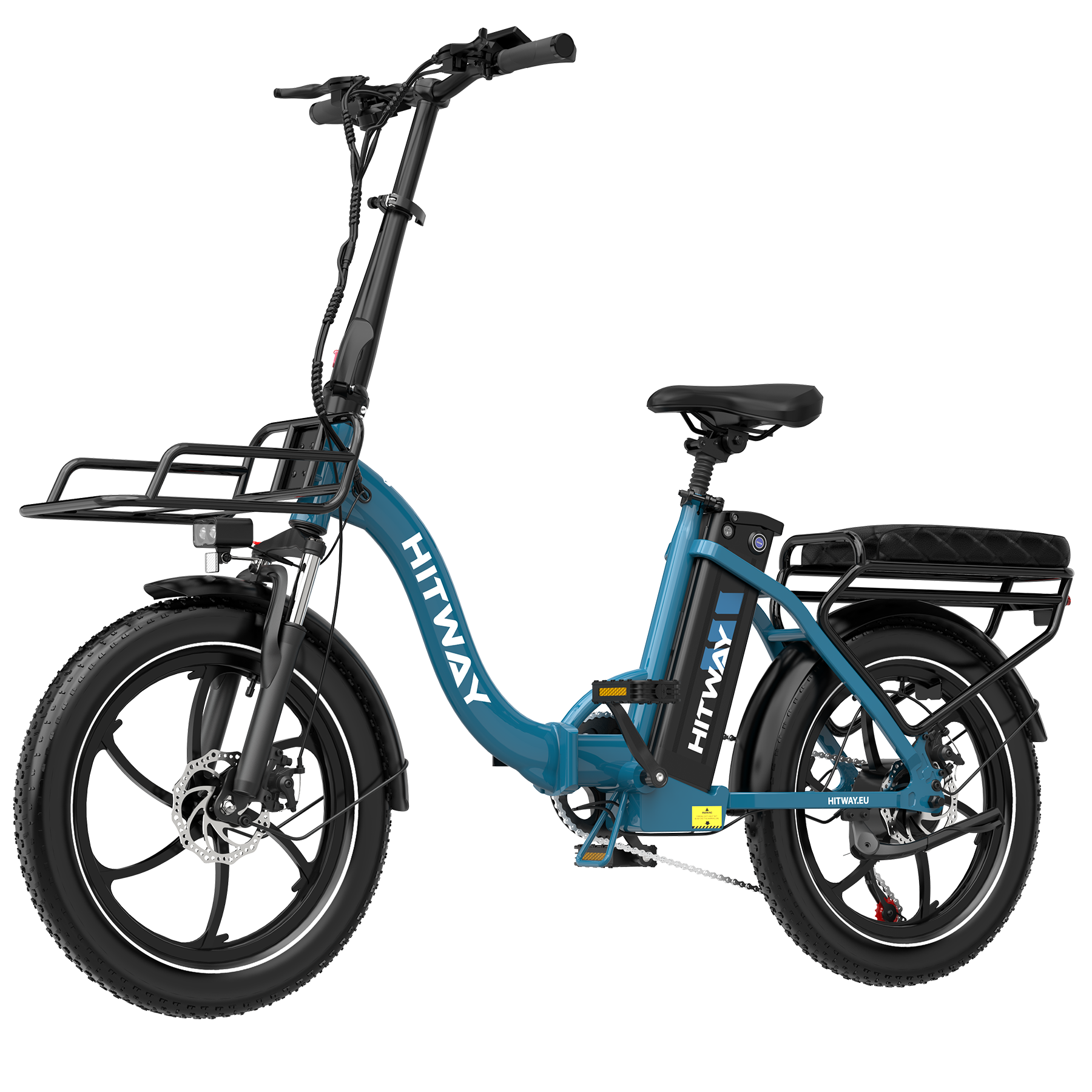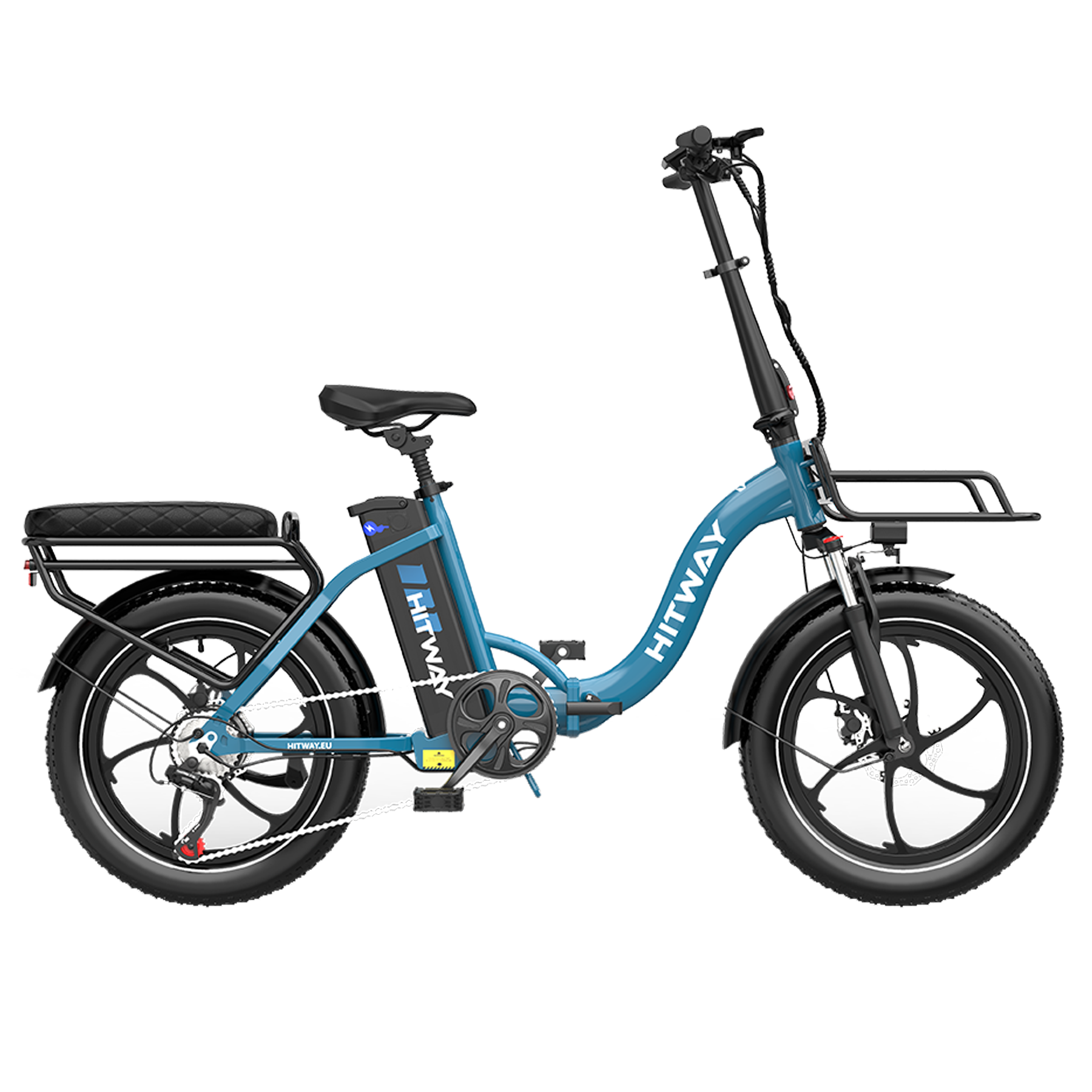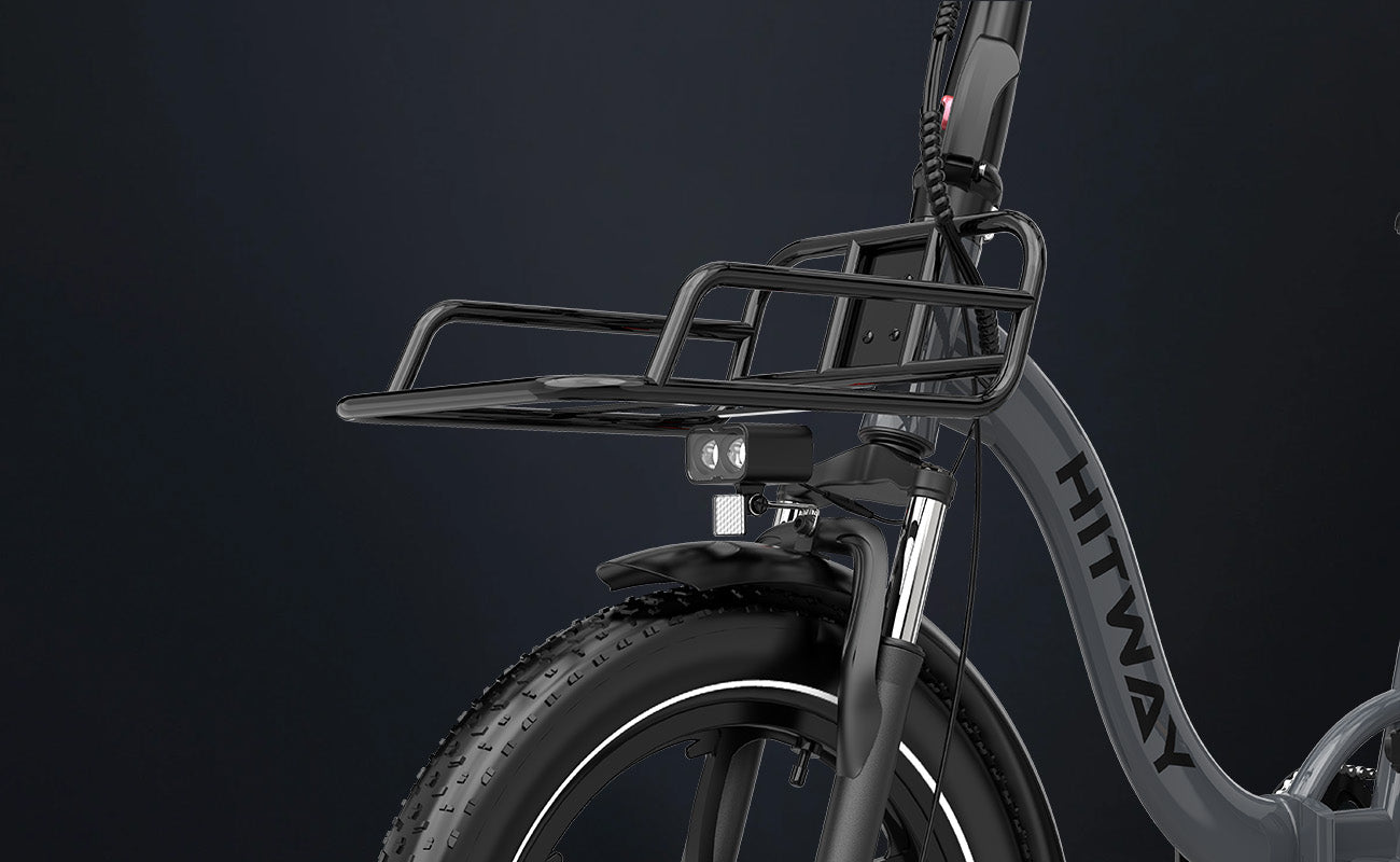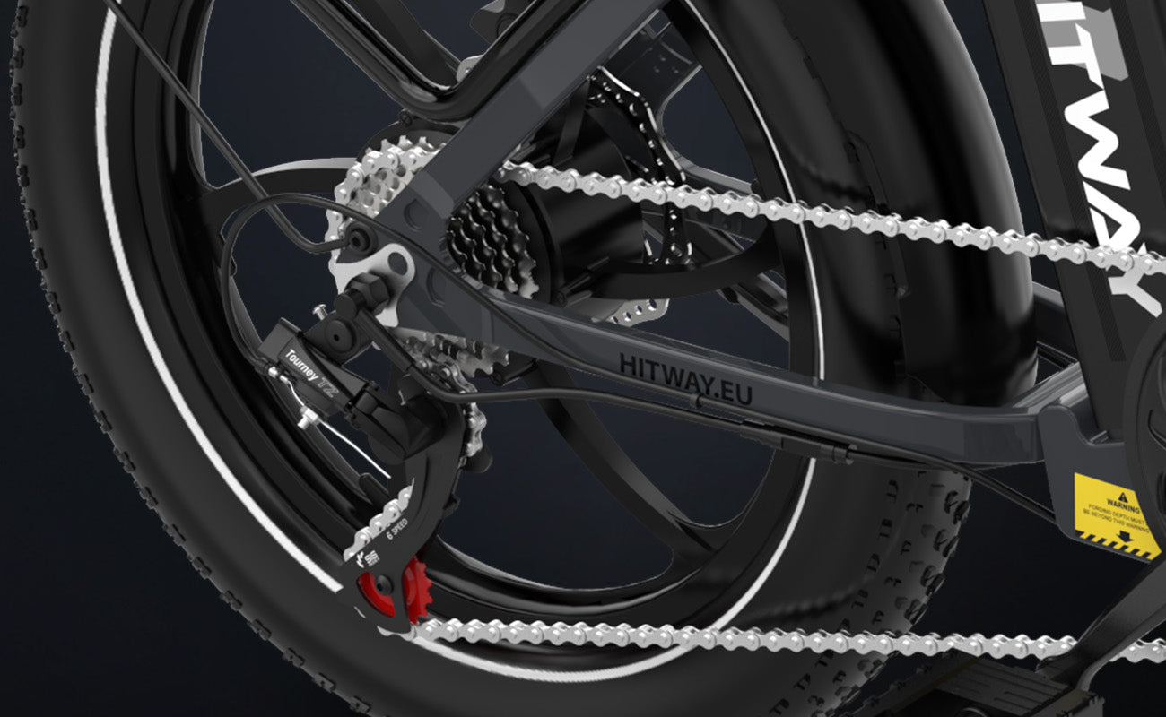 The HITWAY e-bike is equipped with a suspension fork with a lockout function, allowing you to switch between comfortable damping on rough terrain and a rigid fork for efficient riding on flat roads. This ensures optimal control and riding comfort at all times.