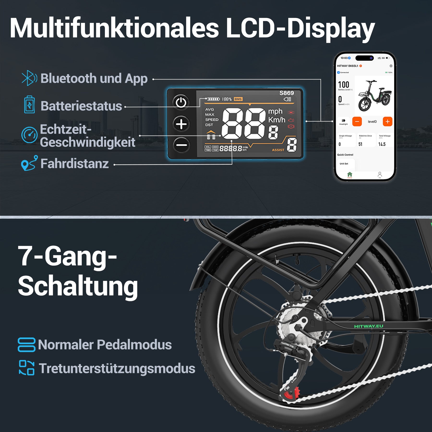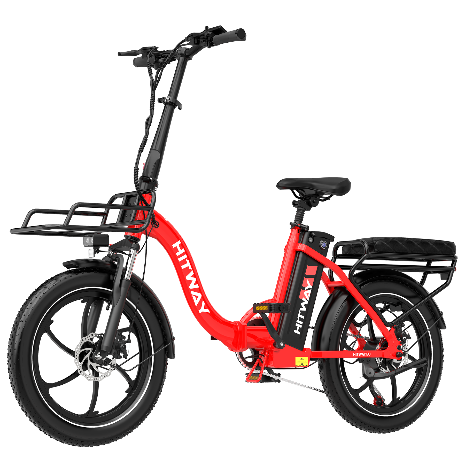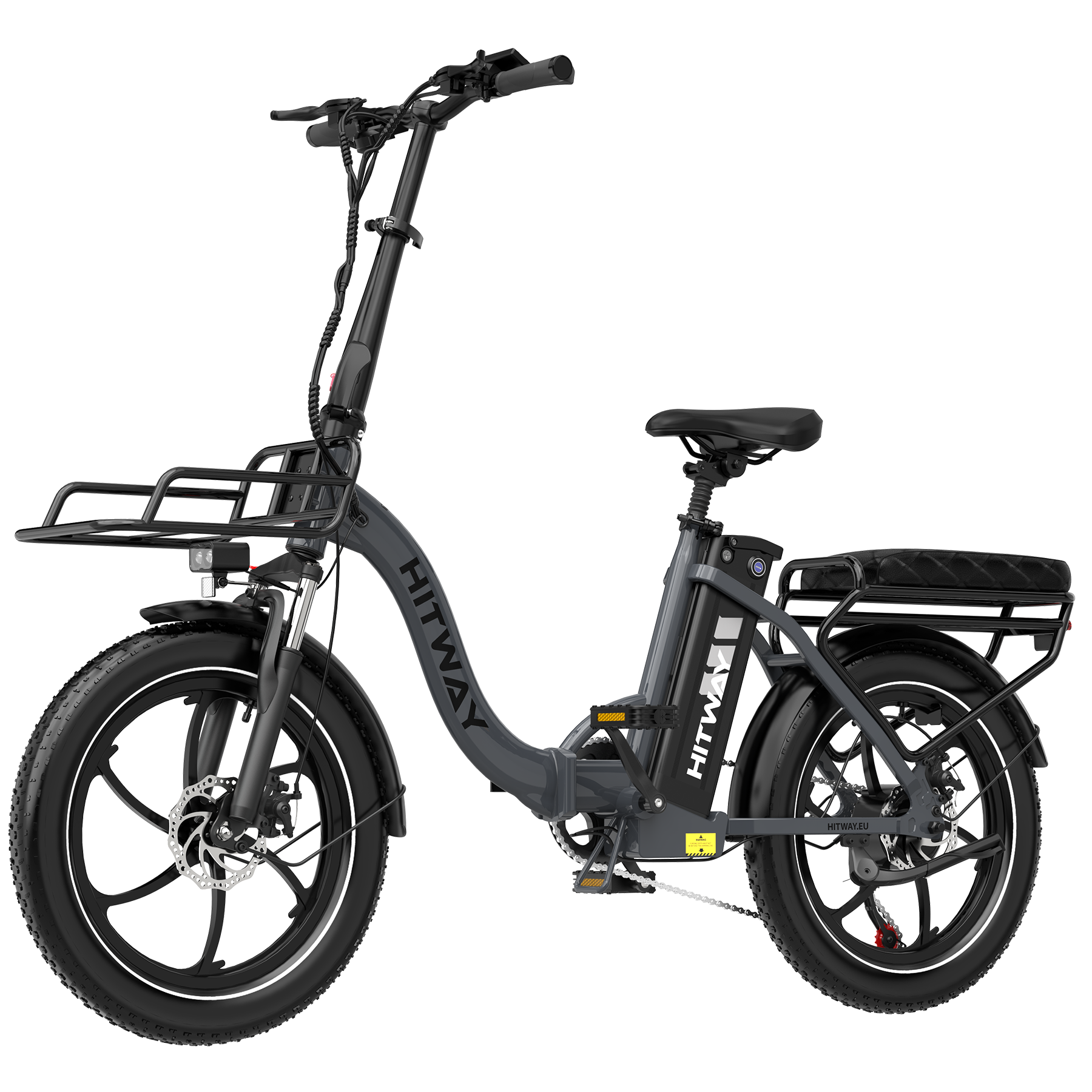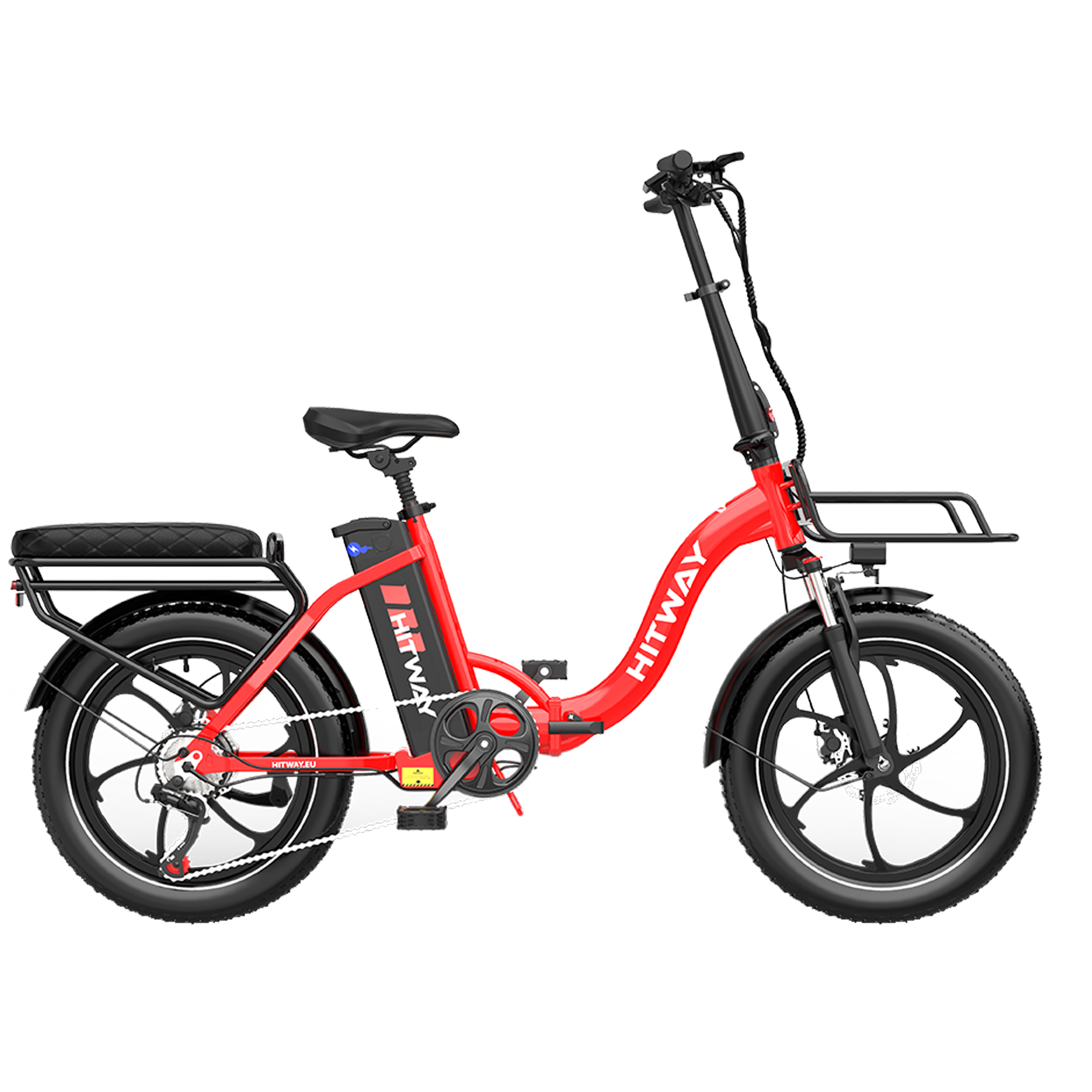 The HITWAY e-bike is equipped with a suspension fork with a lockout function, allowing you to switch between comfortable damping on rough terrain and a rigid fork for efficient riding on flat roads. This ensures optimal control and riding comfort at all times.