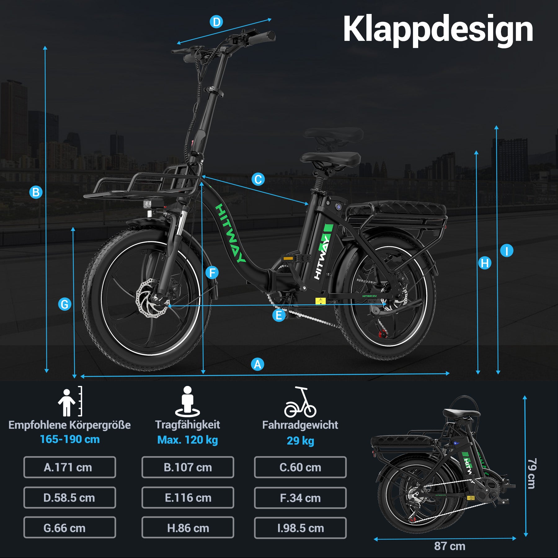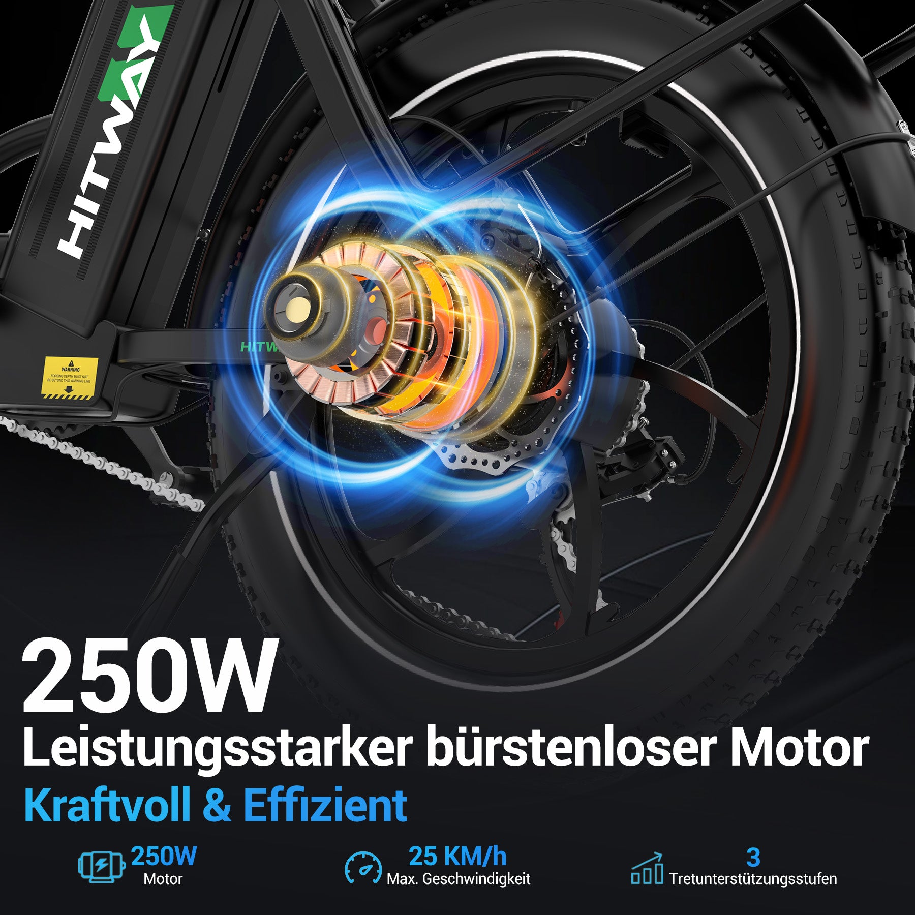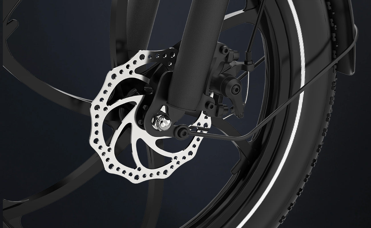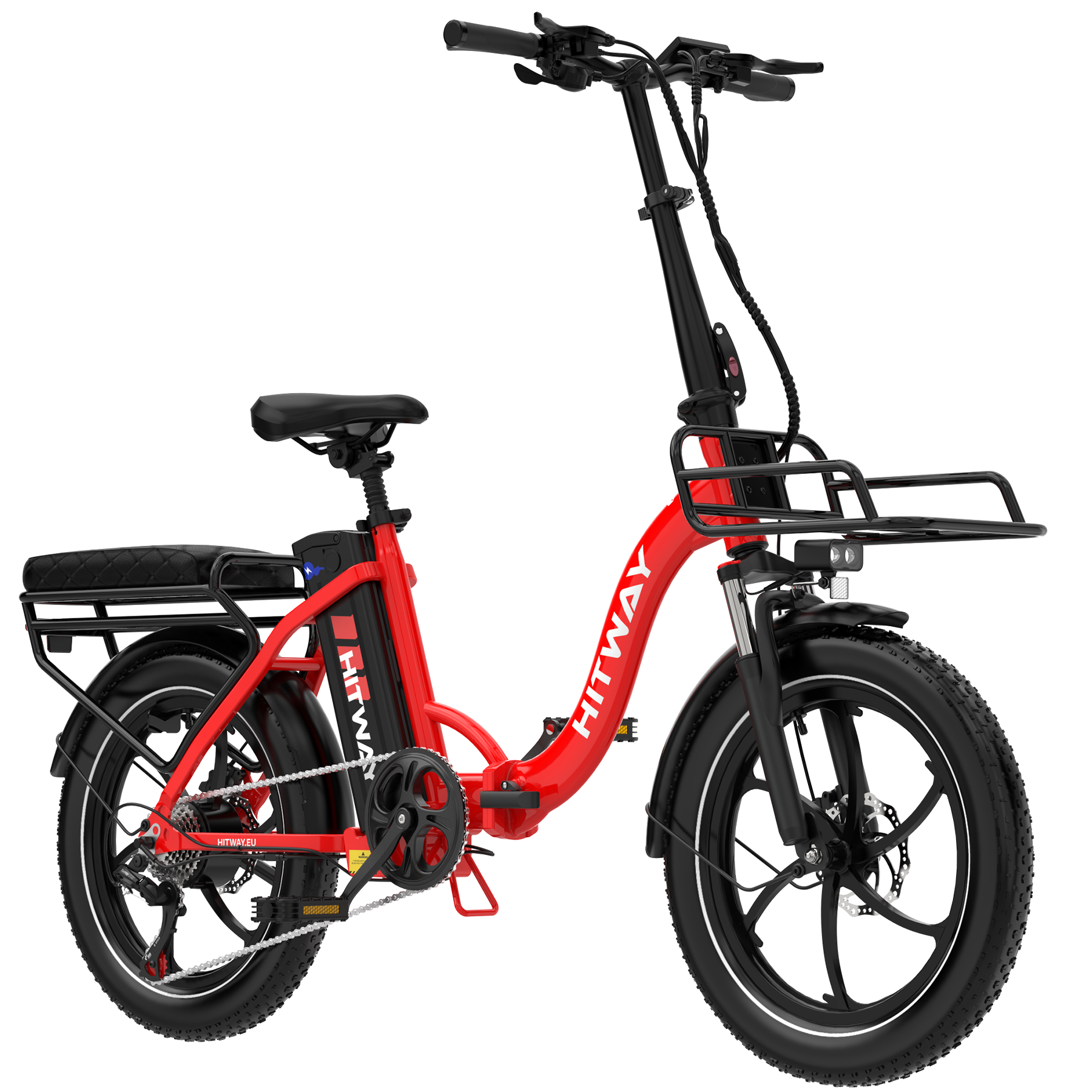 The HITWAY e-bike is equipped with a suspension fork with a lockout function, allowing you to switch between comfortable damping on rough terrain and a rigid fork for efficient riding on flat roads. This ensures optimal control and riding comfort at all times.