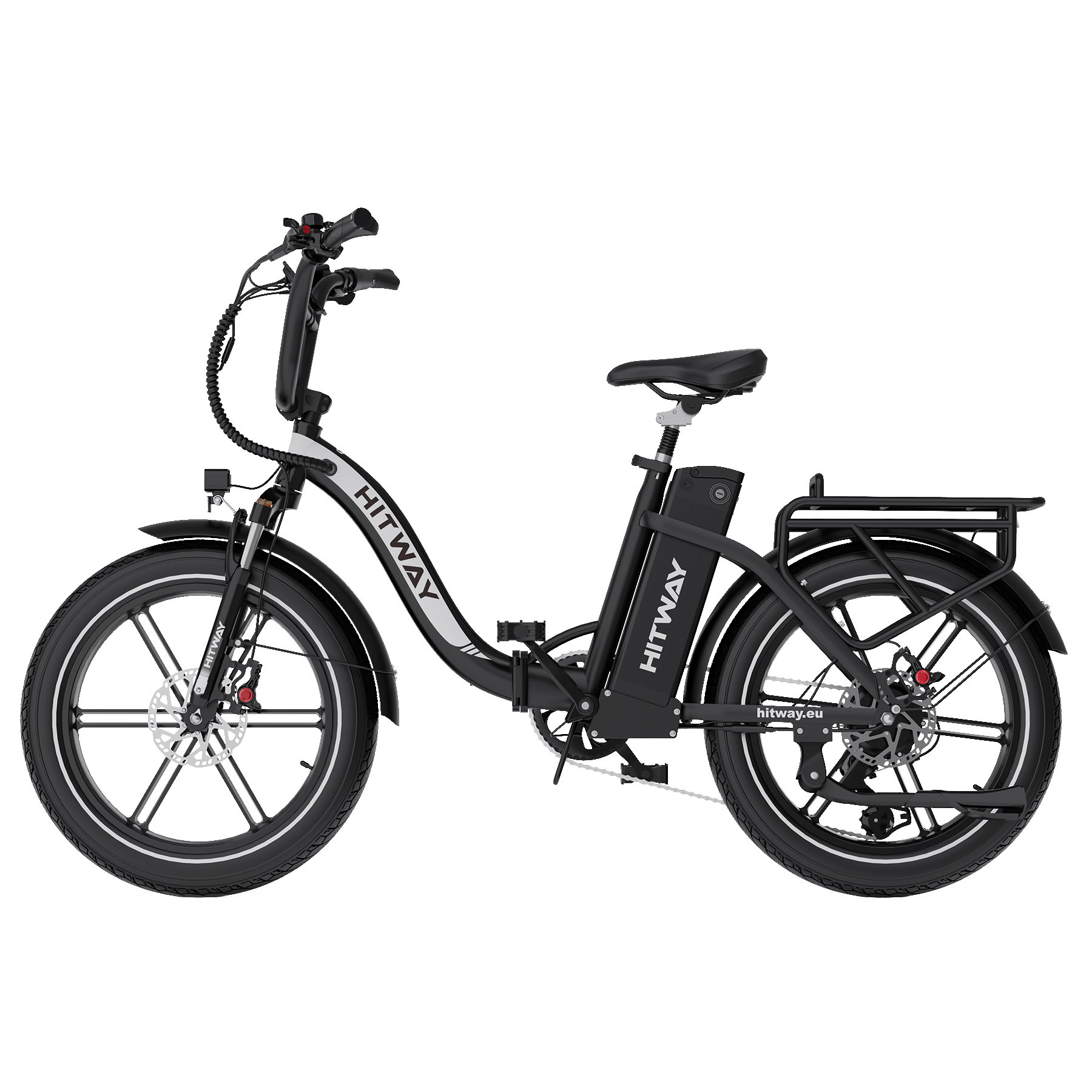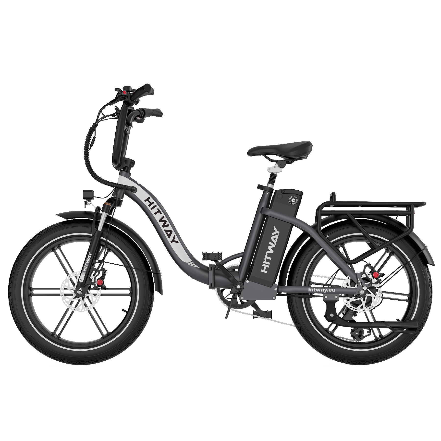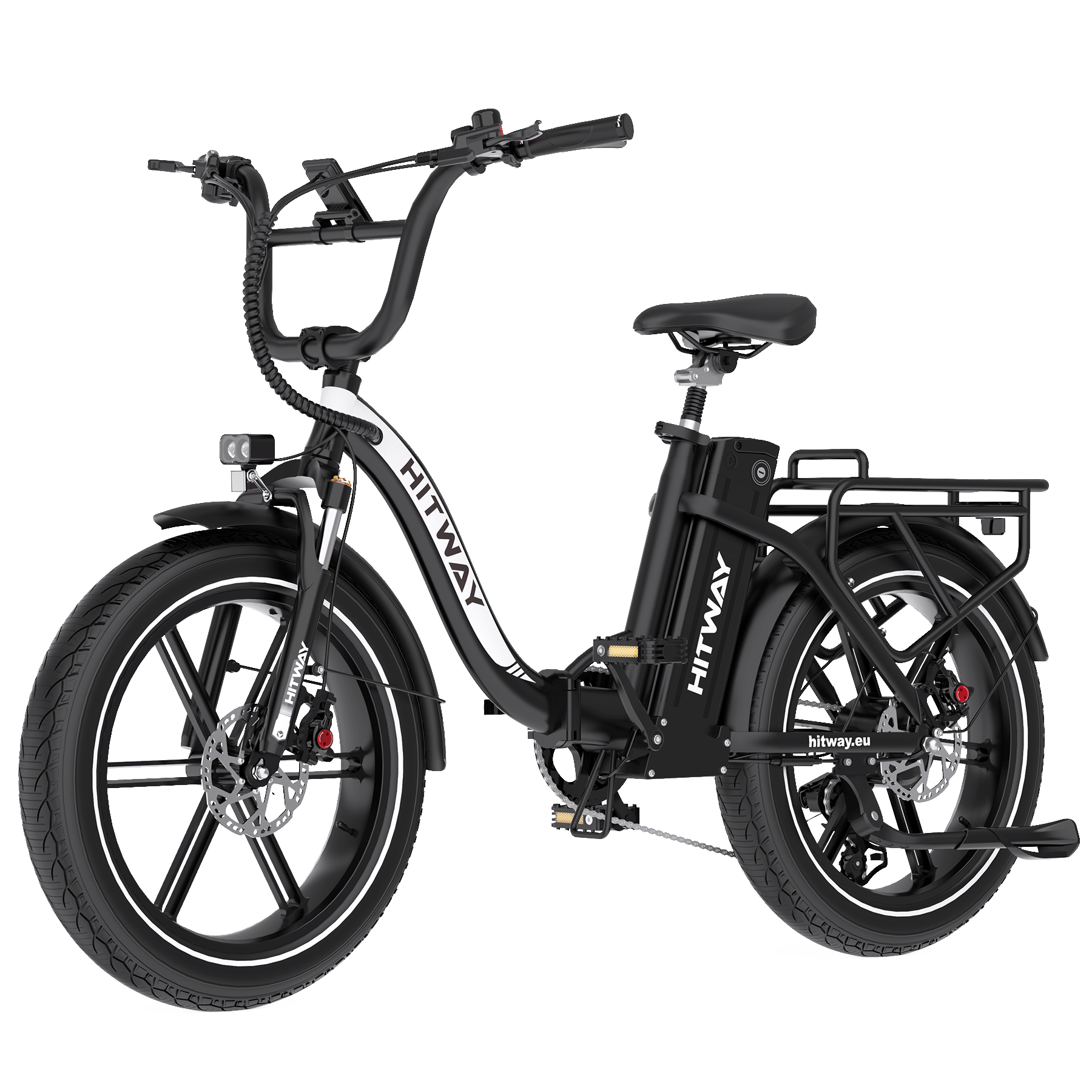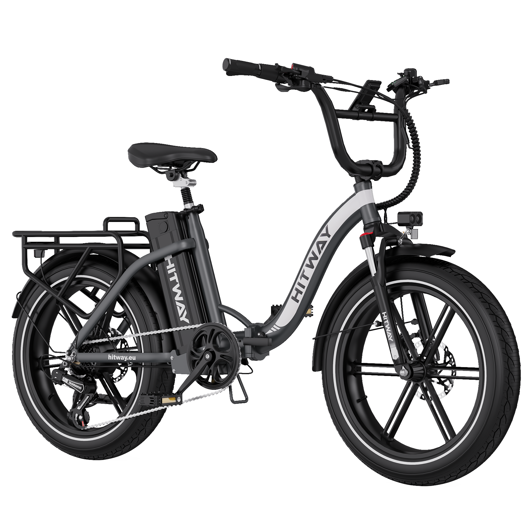 Folding bike with 20 x 3.0 inch fat tires and low entry.