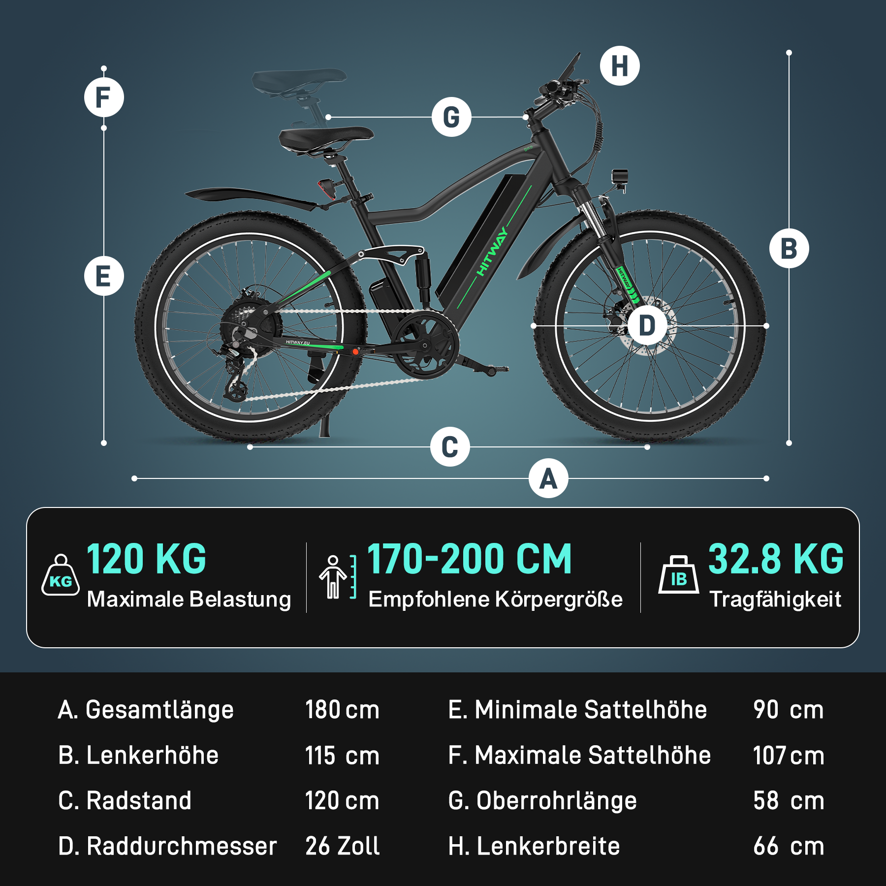 - Tires 26×4.0 inches