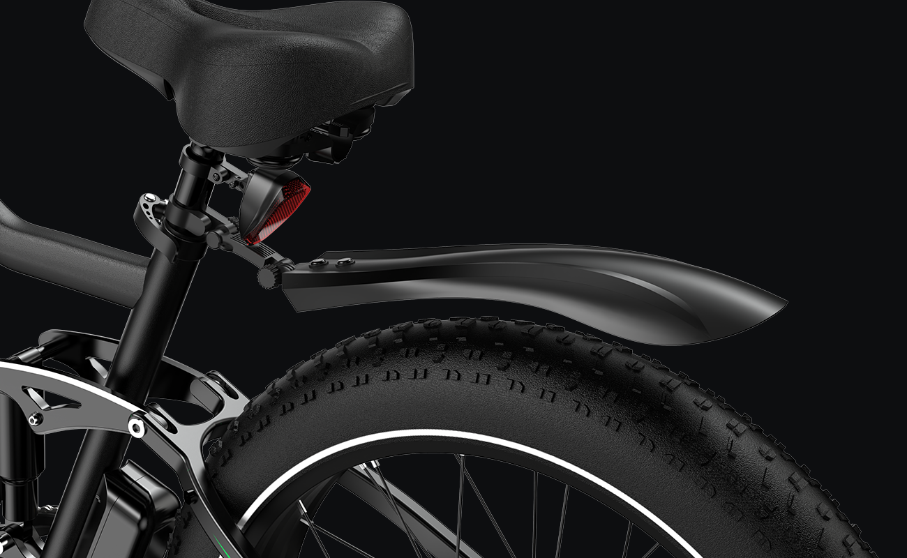 Equipped with large 26x4.0-inch tires, the e-bike is designed to conquer any terrain. Whether on sand, snow, gravel or asphalt, these wide tires offer excellent grip, stability and comfort for a smooth and controlled ride in all conditions.