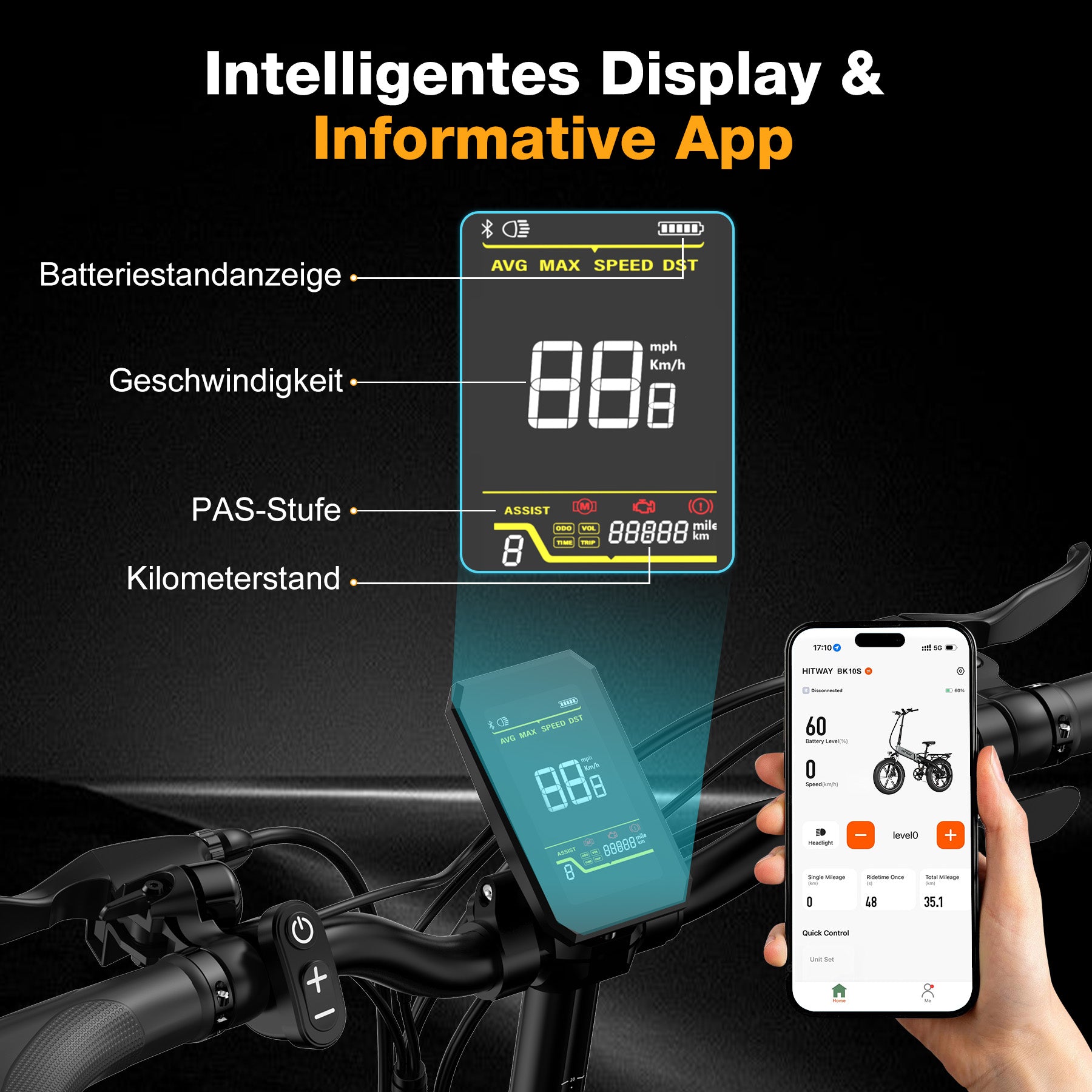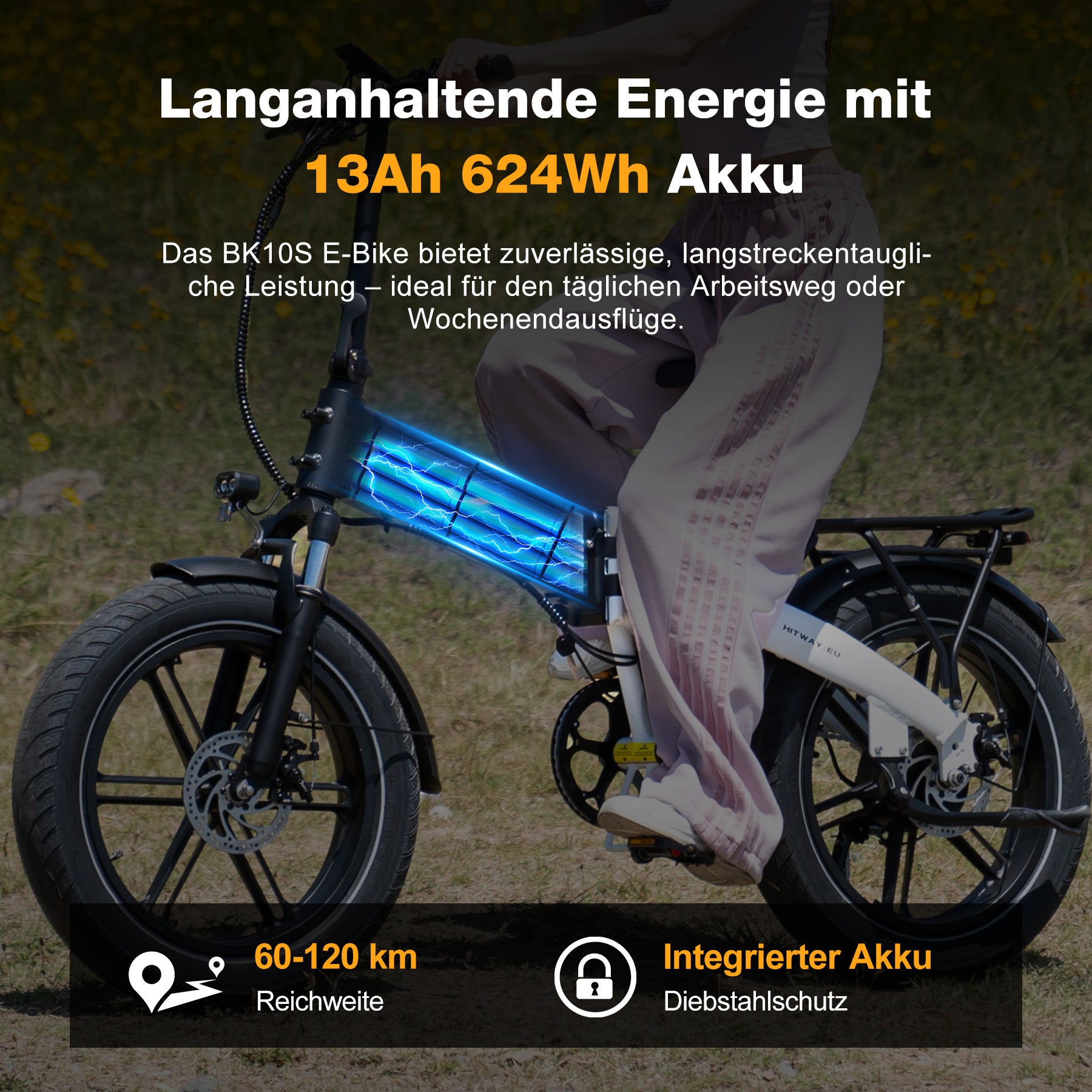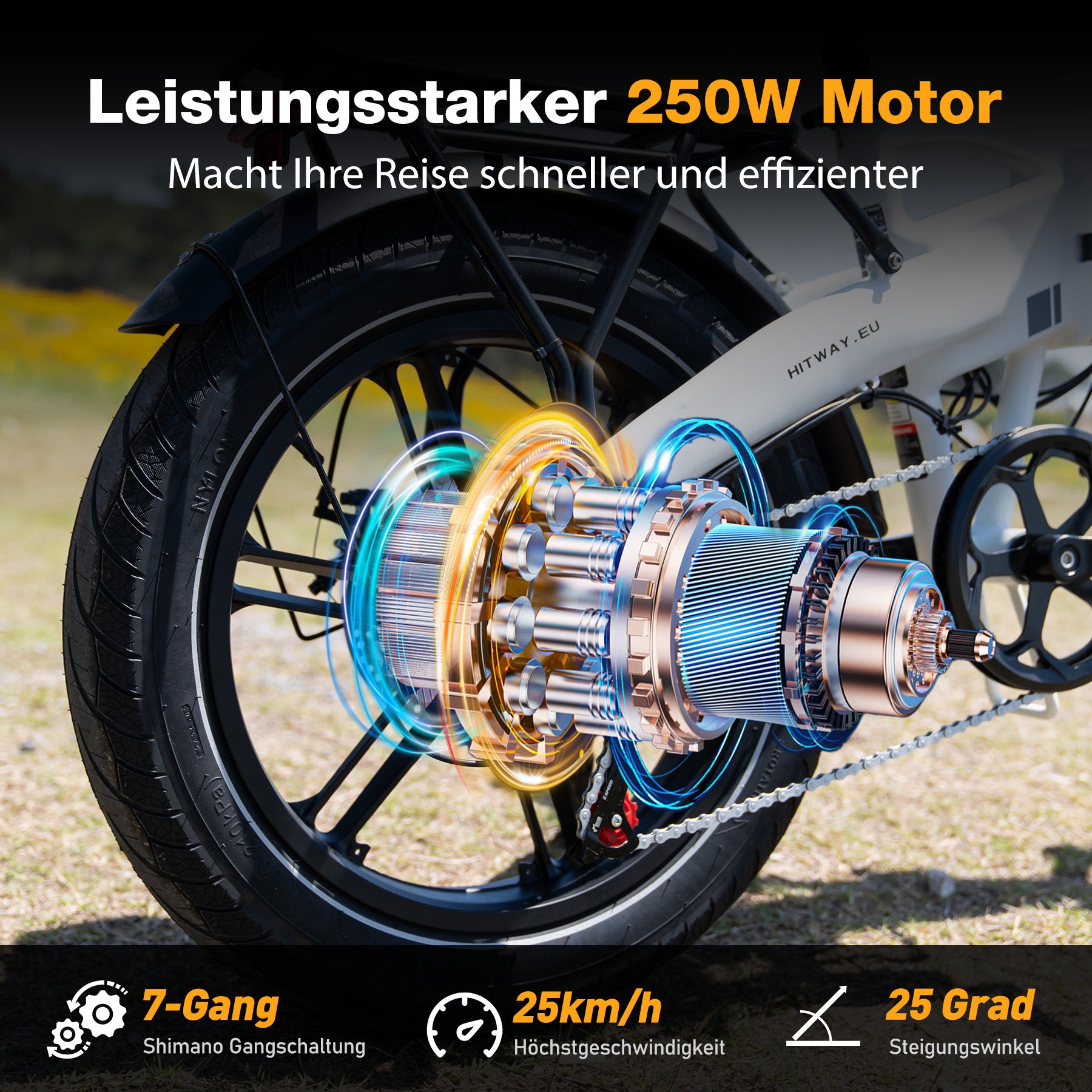 Das HITWAY BK10S E-Bike ist mit einem 250W Motor ausgestattet, der beeindruckende 70Nm Drehmoment liefert. Dies sorgt für starke Beschleunigung und mühelose Steigfähigkeit. Genießen Sie eine robuste Leistung und ein sicheres Fahrgefühl auf verschiedenen Untergründen.