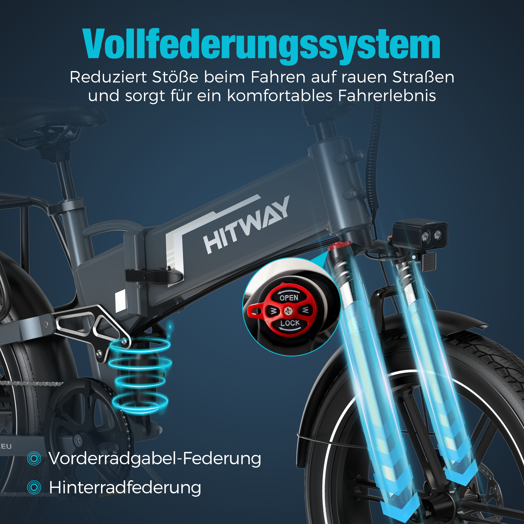 Der HITWAY BK10S PRO ist mit einem gesetzeskonformen 250W-Nabenmotor ausgestattet, der ein beeindruckendes Drehmoment von 70Nm liefert – ideal für steile Anstiege und unwegsames Gelände. Egal ob Waldwege oder Schotterpisten, dieser leistungsstarke Antrieb sorgt für dynamische Beschleunigung und gleichmäßige Leistung. In Kombination mit der Vollfederung vorne und hinten genießt du eine ruhige, komfortable Fahrt – auch auf schwierigen Strecken.