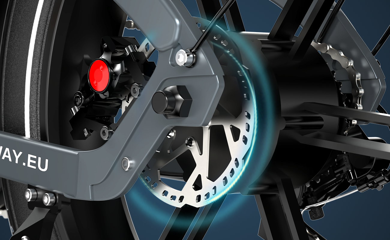 Ausgestattet mit 20×4.0 Zoll pannensicheren Fat-Reifen, einer verriegelbaren Federgabel vorne und einem zentralen Stoßdämpfer hinten, meistert der BK10S PRO jedes Gelände souverän. Ob Schotter, Sand, Schnee oder steile Anstiege – du genießt jederzeit ruhige Fahrten mit optimaler Kontrolle. Zusammen mit kraftvollen Scheibenbremsen und einem robusten Rahmen ist dieses E-Bike bereit für jedes Abenteuer.