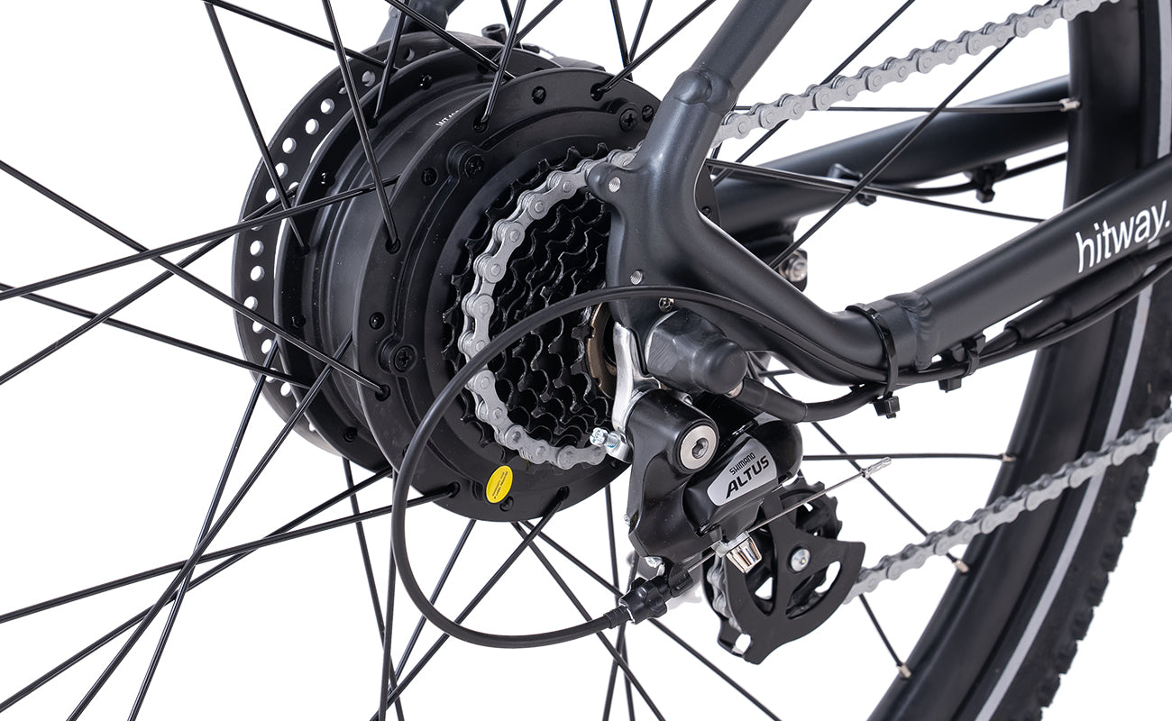 Ausgestattet mit einem 250W Hinterradnabenmotor und einem Drehmoment von 70 Nm meistert das HITWAY BK15 PLUS E-Mountainbike Steigungen von bis zu 25° mühelos. Der Motor arbeitet ruhig, effizient und kraftvoll – perfekt für den täglichen Arbeitsweg ebenso wie für anspruchsvolle Offroad-Strecken. Genießen Sie eine starke Beschleunigung und zuverlässige Leistung auf jedem Terrain.