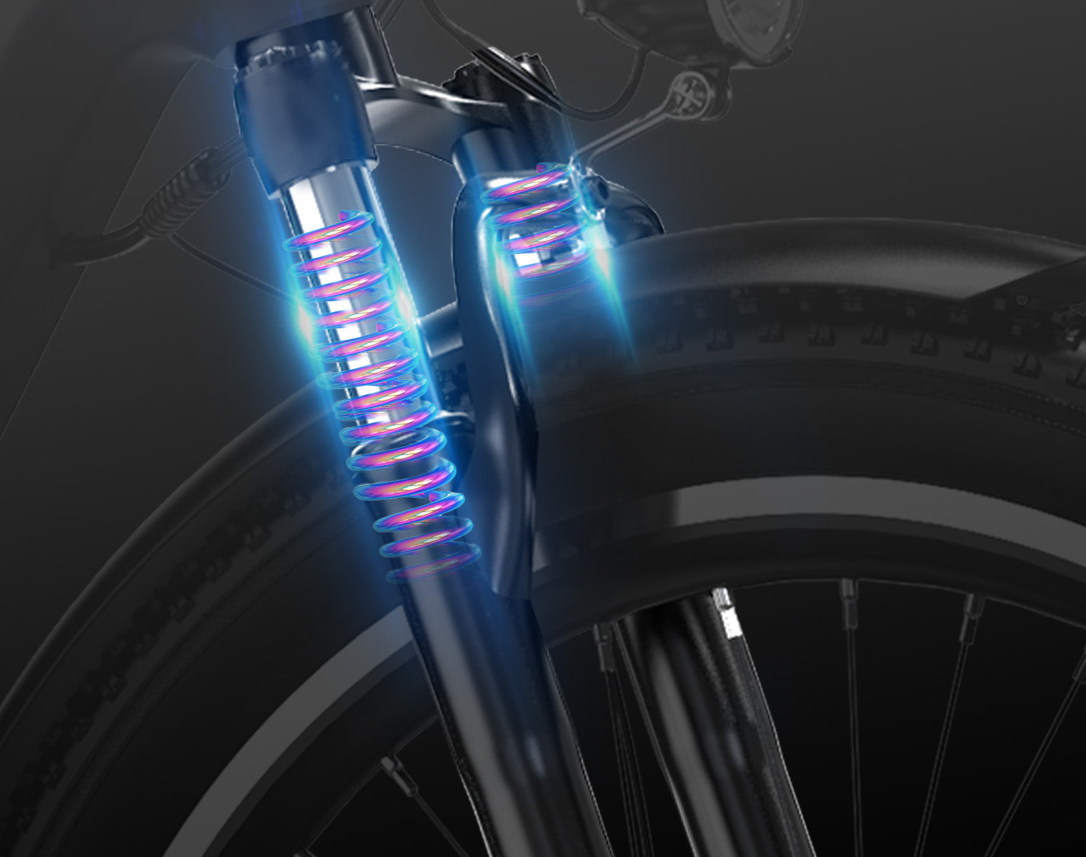 Der Aluminiumrahmen ist robust und gleichzeitig leicht, was das E-Bike einfach zu handhaben macht – auf unterschiedlichsten Strecken. Seine korrosionsbeständige Bauweise erhöht die Langlebigkeit, während das Gewicht niedrig bleibt und somit den Transport erleichtert. Die Vorderradfederung absorbiert Stöße auf der Straße und sorgt für eine angenehmere Fahrt auf unebenem Gelände. Diese Kombination aus stabilem Rahmen und zuverlässiger Federung ist ideal für Stadtfahrten und Fahrten in der Natur.