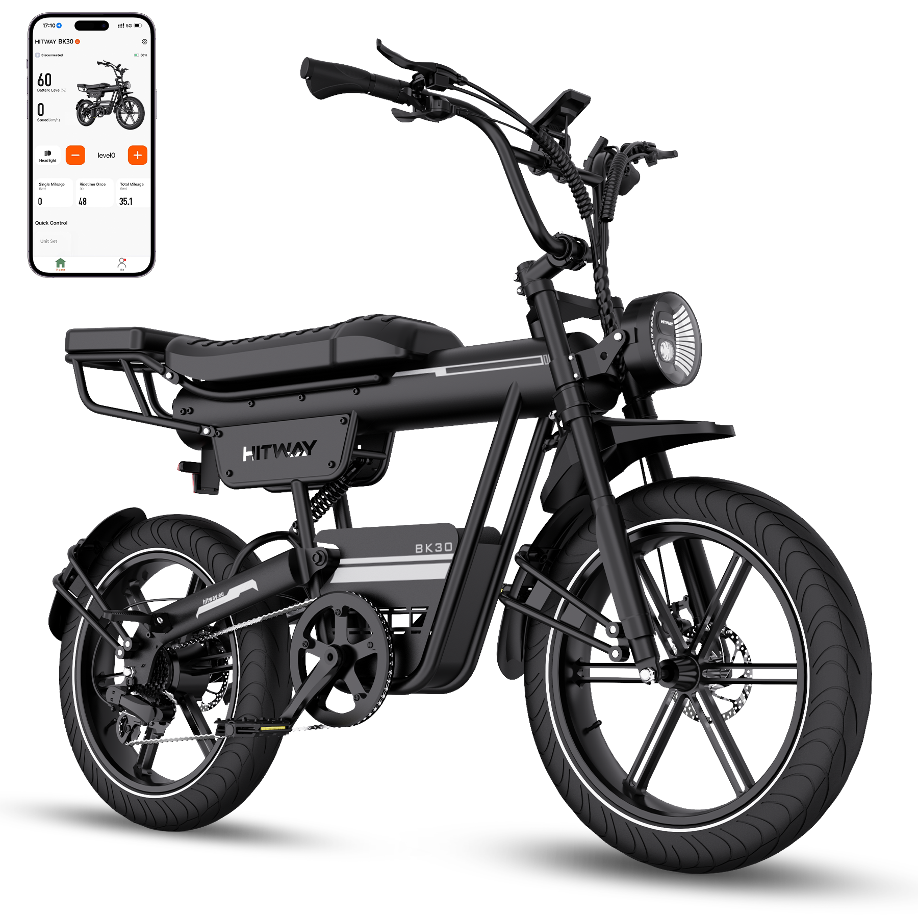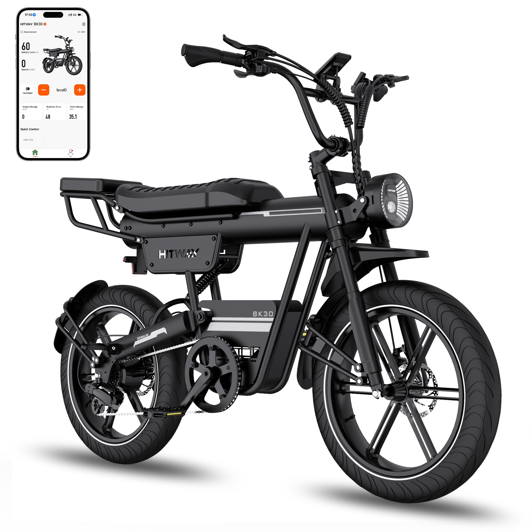 Das HITWAY BK30 E-Bike ist mit einer hochkapazitiven 48V 23,4Ah (1123,2Wh) Lithiumbatterie ausgestattet und bietet eine beeindruckende Reichweite von 90–180 km pro Ladung. Der herausnehmbare, versteckte Akku ermöglicht bequemes Aufladen zu Hause oder im Büro und sorgt gleichzeitig für verbesserten Diebstahlschutz – für ein sicheres und sorgenfreies Fahrerlebnis.