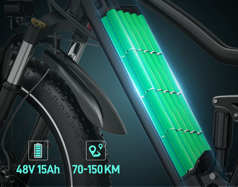 Der HITWAY BK9S E-Bike ist mit einem abnehmbaren 48V 15Ah (720Wh) Akku ausgestattet, der ein unkompliziertes Aufladen jederzeit und überall ermöglicht. Je nach Fahrbedingungen liefert eine vollständige Ladung eine Reichweite von 70 bis 150 Kilometern, was Ihren Ansprüchen an die Mobilität gerecht wird. Zusätzlich ist der Akku mit einem Schloss versehen, um einen erhöhten Diebstahlschutz zu gewährleisten.
