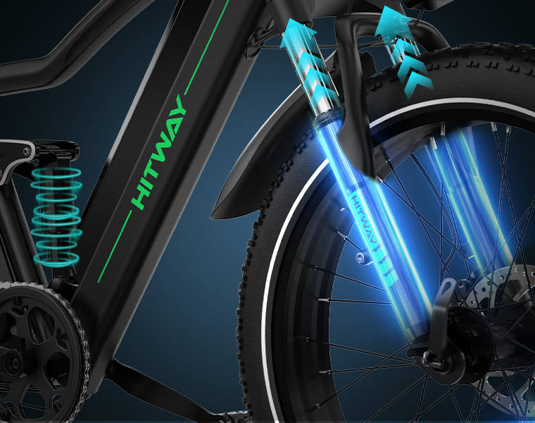 Unser fortschrittliches Front- und Heckfederungssystem absorbiert Stöße und Unebenheiten und sorgt für eine geschmeidige und komfortable Fahrt auf jedem Terrain. Erleben Sie verbesserte Stabilität und Kontrolle, egal ob Sie durch die Stadt oder über unebene Wege fahren.