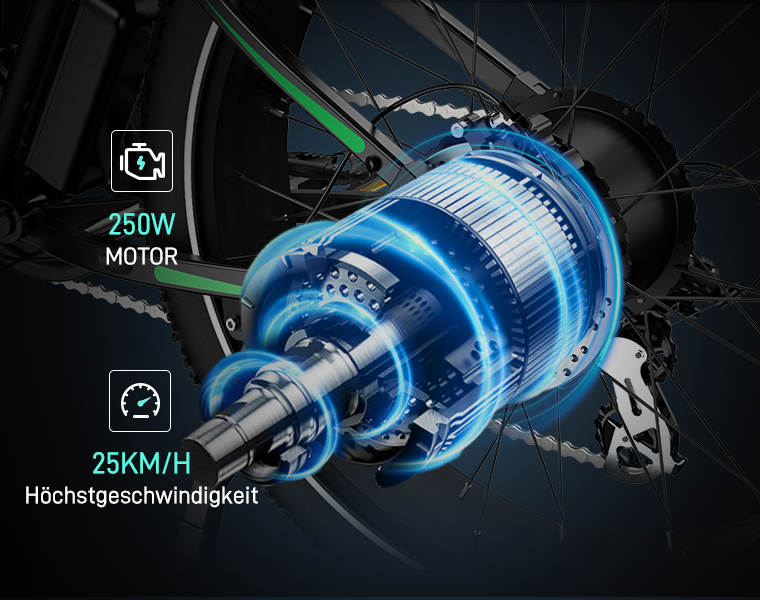 Das HITWAY BK9S E-Bike ist mit einem 250W Motor ausgestattet, der beeindruckende 60Nm Drehmoment liefert. Dies sorgt für starke Beschleunigung und mühelose Steigfähigkeit. Genießen Sie eine robuste Leistung und ein sicheres Fahrgefühl auf verschiedenen Untergründen.