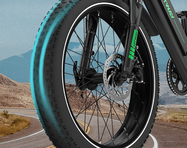 Ausgestattet mit großen 26x4,0-Zoll-Reifen ist das E-Bike darauf ausgelegt, jedes Gelände zu bezwingen. Ob auf Sand, Schnee, Kies oder Asphalt – diese breiten Reifen bieten hervorragenden Grip, Stabilität und Komfort für eine gleichmäßige und kontrollierte Fahrt bei allen Bedingungen.