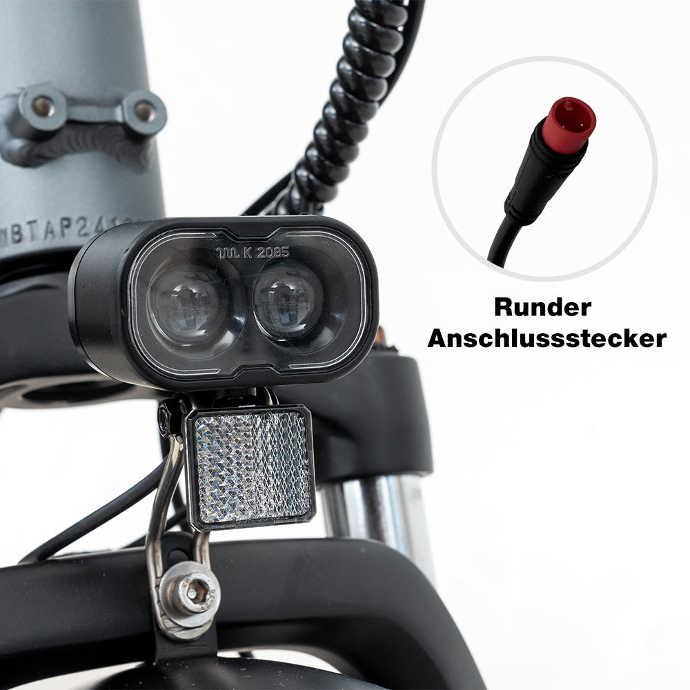 Dieses Frontlicht für E-Bikes ist mit zwei verschiedenen Steckertypen erhältlich: