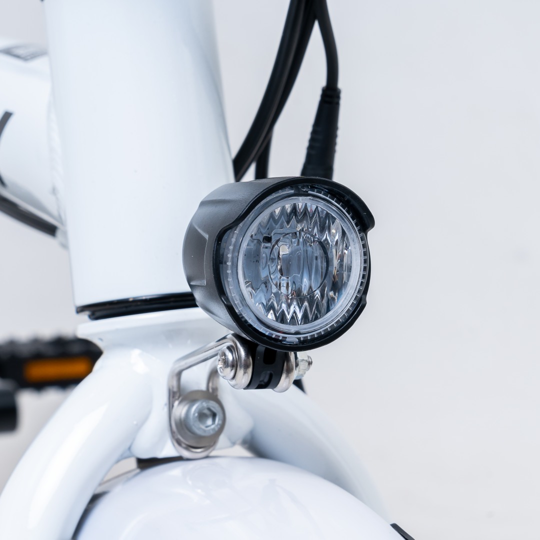Dieses Frontlicht erhöht Ihre Sicherheit und Sichtbarkeit, besonders bei Nacht oder schlechten Lichtverhältnissen. Es lässt sich ganz einfach aktivieren, indem Sie Ihr E-Bike einschalten und die „+“-Taste gedrückt halten. Dadurch werden sowohl das Frontlicht als auch das Rücklicht gleichzeitig eingeschaltet.